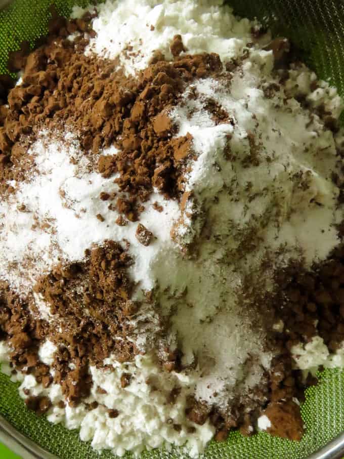 To a small bowl. sift icing sugar(3/4 cup, this would be about 12 tablespoons), cocoa powder(3 tablespoons).