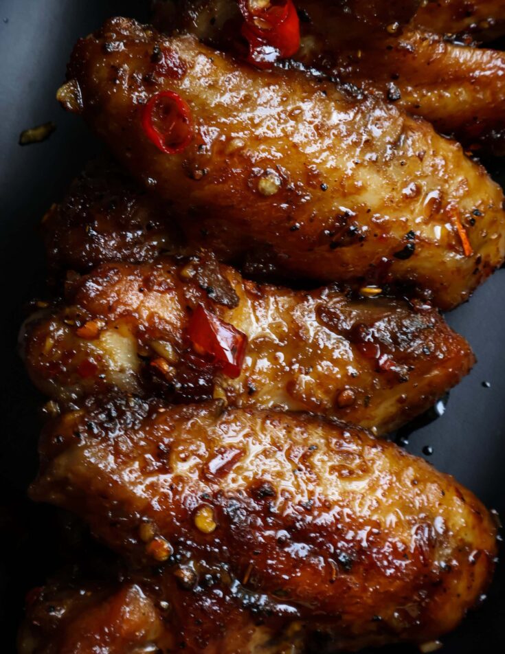 These sticky sweet and spicy chicken wings are shallow fried on the stove for maximum flavor ideal for parties, game nights or quick dinners.